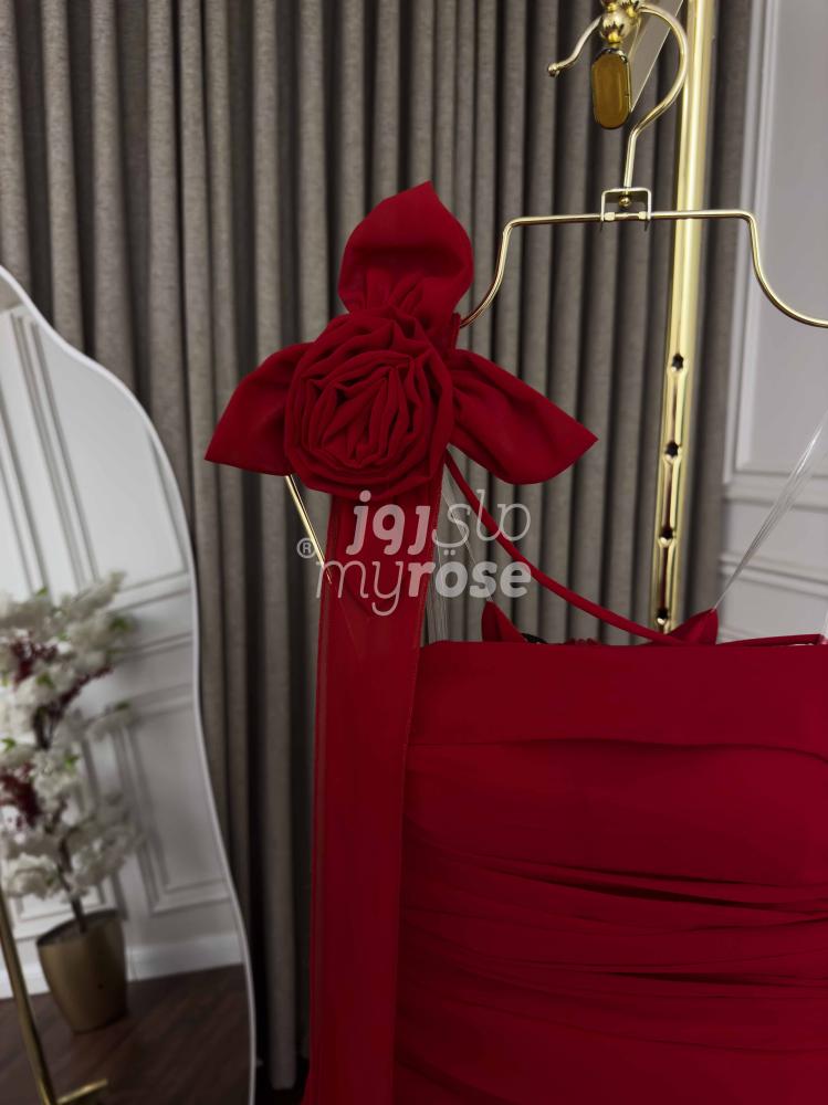 - إضافة الوردة بنفس لون الفستان على الكتف تجعله أكثر تميزا وأناقة هذه التفصيلة الراقية تضفي لمسة من النعومة والجمال مما يجعله خيارا مثاليا لكل امرأة تحب التفاصيل الفريدة