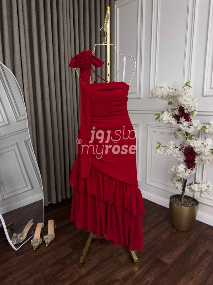 - يتميز فستان احمر قصير بتصميمه الطبقي الذي يضفي لمسة فريدة من الأنوثة والأناقة تعطي الطبقات المتدرجة حركة جميلة للفستان عند المشي مما يجعلك تبدين وكأنك أميرة تتهادى بكل ثقة وسحر