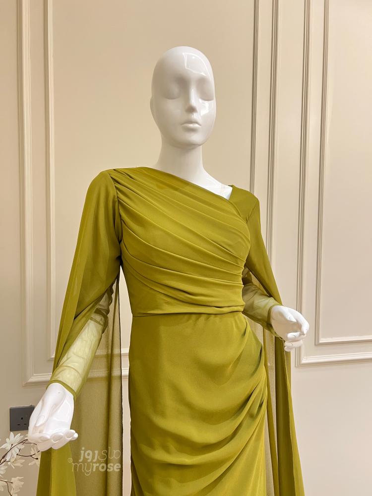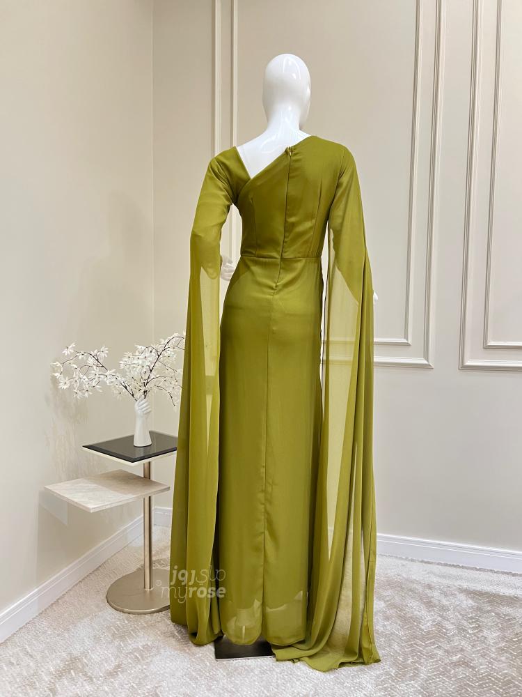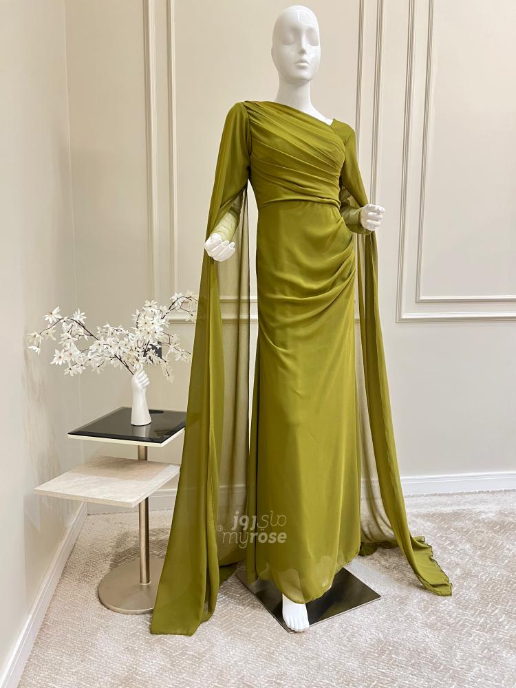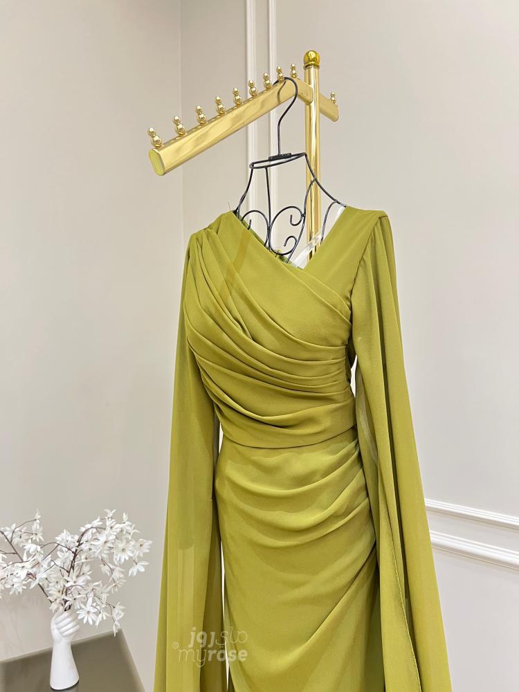 - قماش شيفون ناعم وخفيف: فستان زيتي شيفون يوفر لك الراحة والانسيابية مع لمسة فخمة تناسب الإطلالات الرسمية وغير الرسمية