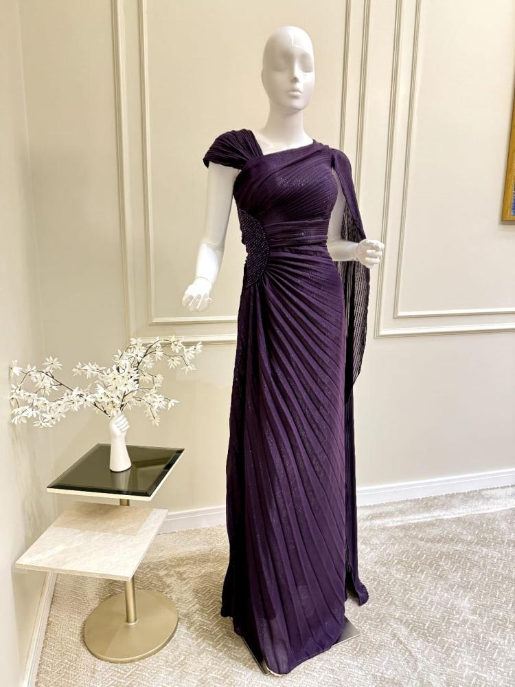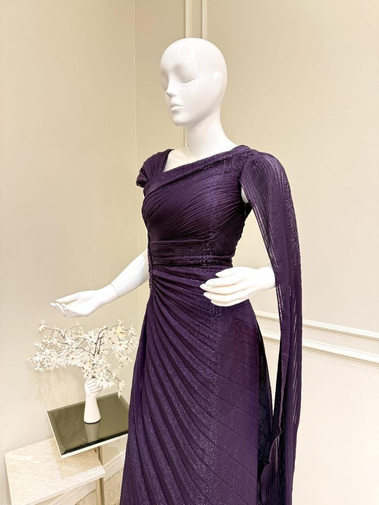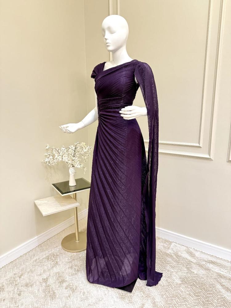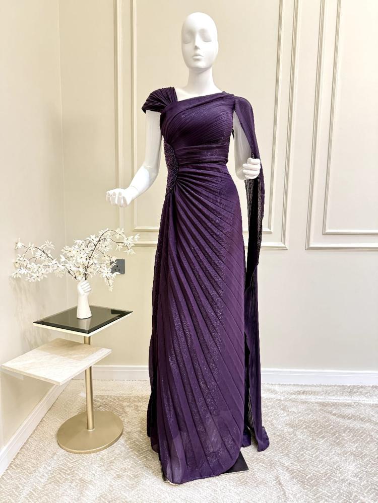 فستان سهرة موف بكسرات – لمسة فخامة بعبق الأناقة